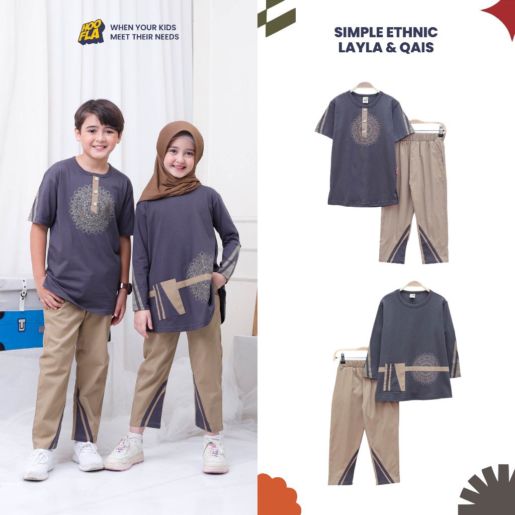 [Star] Hoofla Simple Etnic Layla & Qais Baju Anak Laki-Laki 5-12 Tahun Setelan Casual Muslim Dark Grey