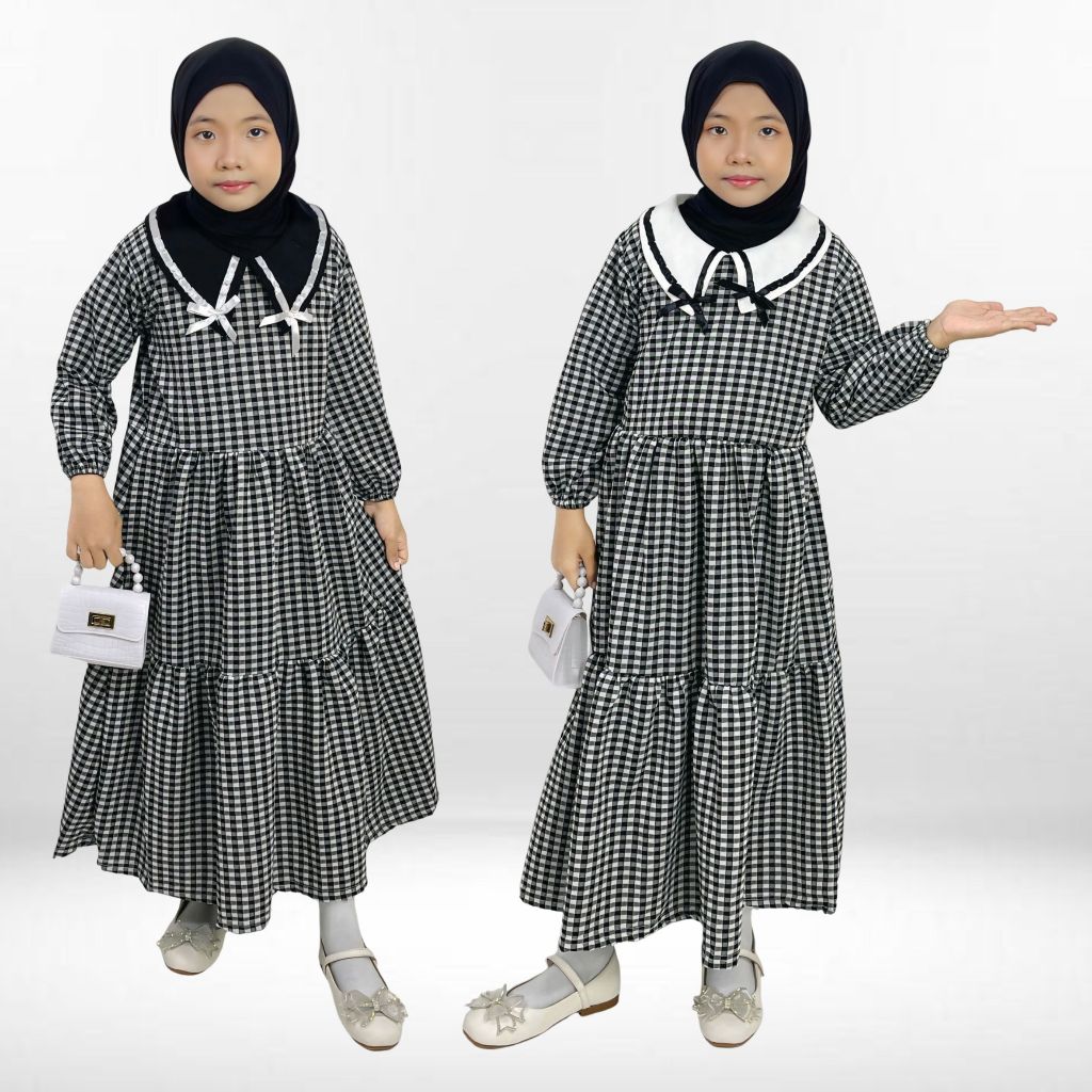 [Star] Gamis Anak Rajut Kotak Pita Usia 3-11 Tahun Montyfashion