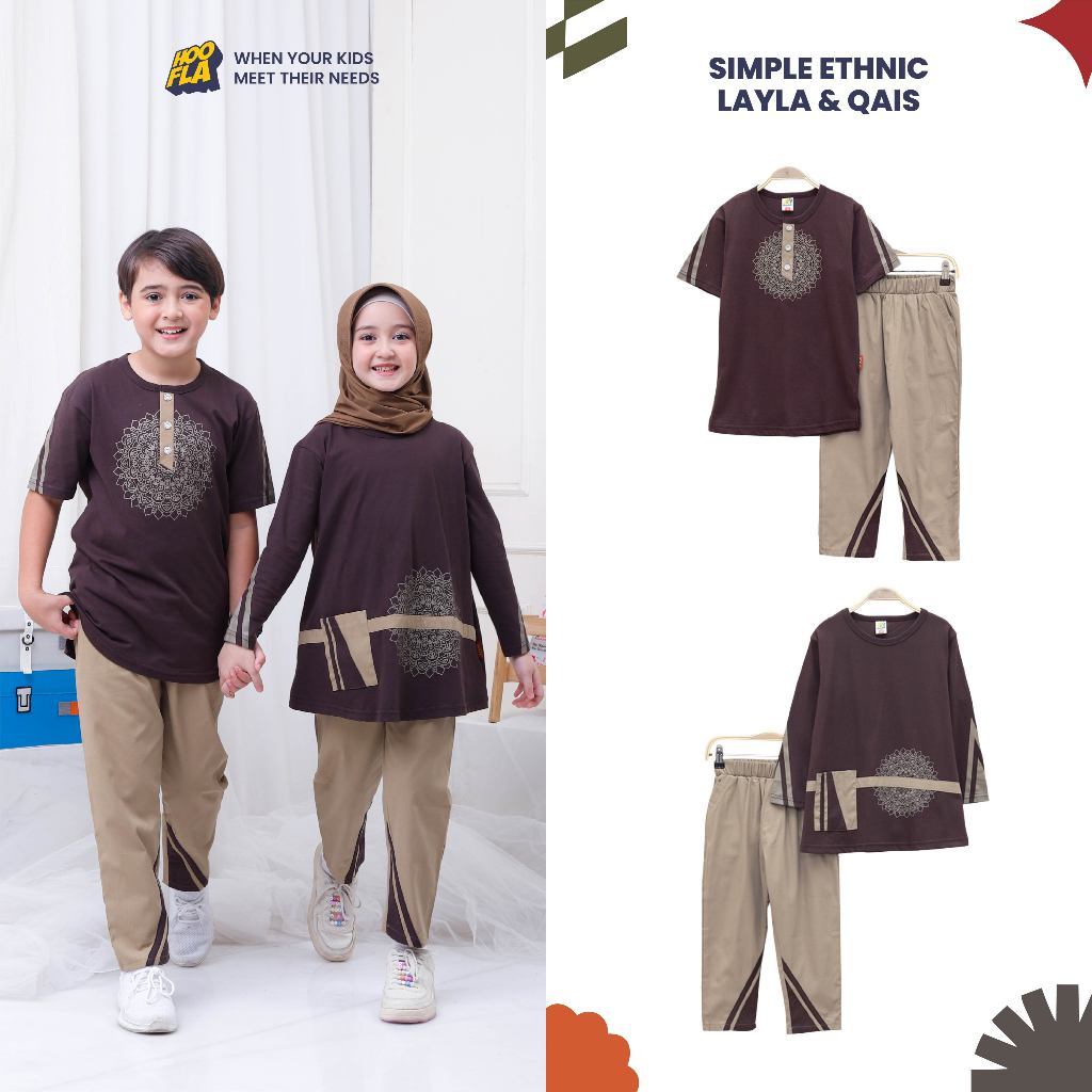 [Star] Hoofla Simple Ethnic Layla Qais Baju Muslimah Anak 5-12 Tahun Setelan Casual Brown