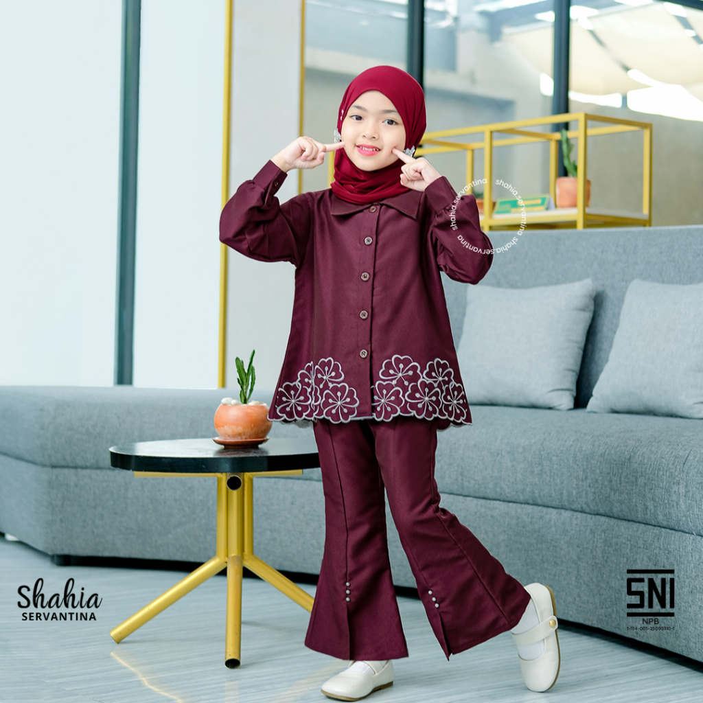 [Star] Shahia Servantina - Fresia Oneset Bordir Setelan Celana Anak Perempuan Muslim Panjang