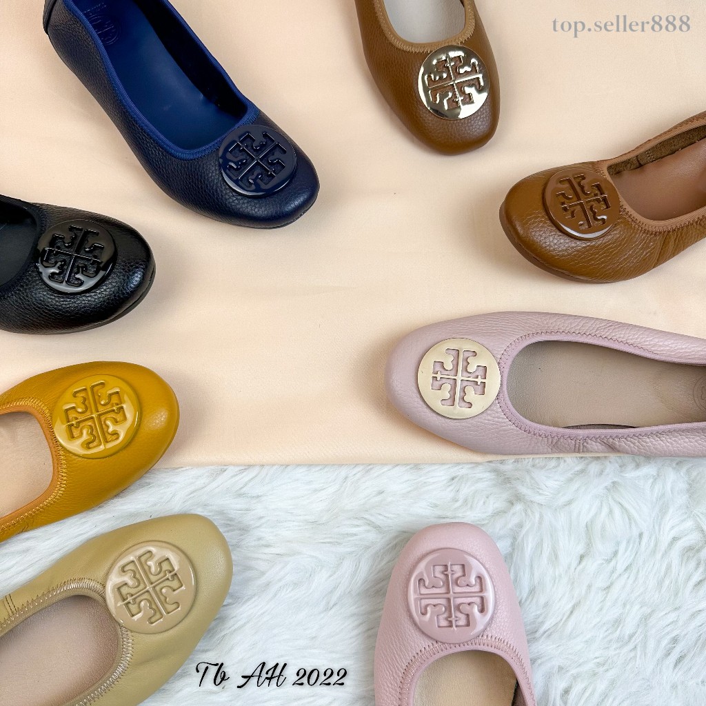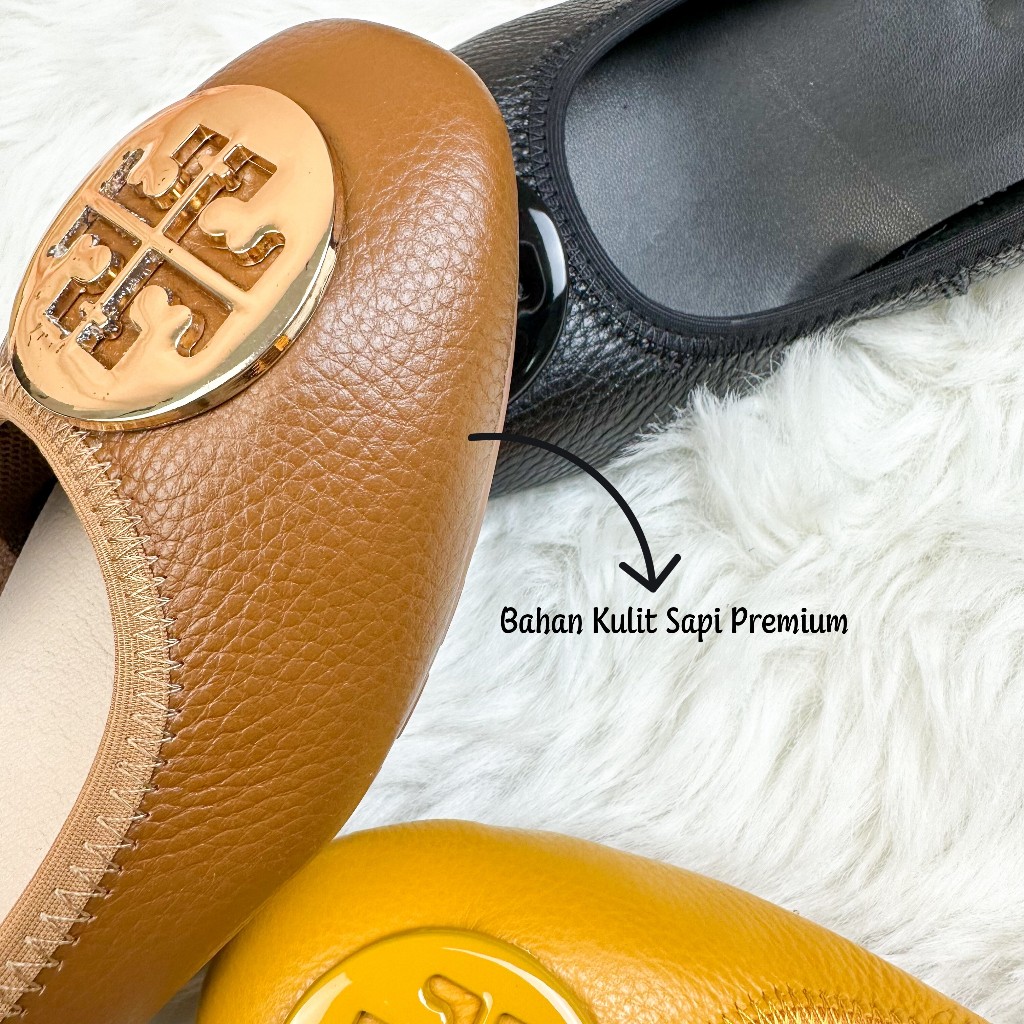 TORY TB Sepatu Wanita Flatshoes 100 PERSEN Kulit Asli AH 2022 Logo Full