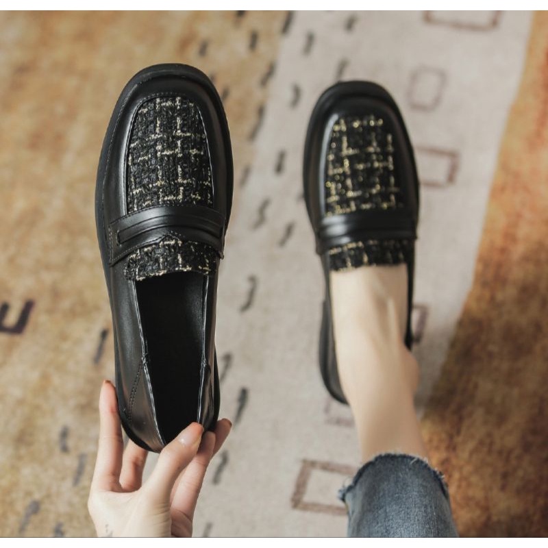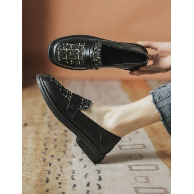 Sepatu Oxfords Kulit Hitam Wanita Sepatu Kasual Musim Semi 2021 Sepatu Flat Wanita Klasik Modis Sepatu Oxford Platform Antik Wanita /