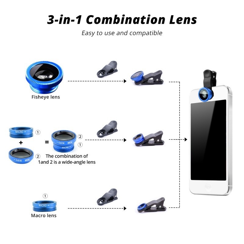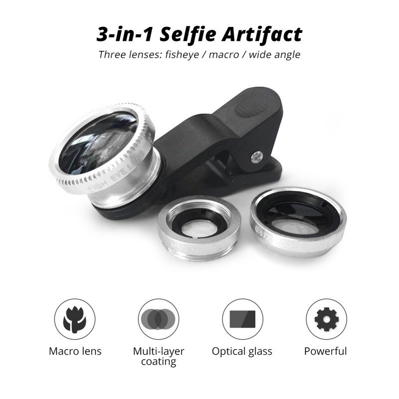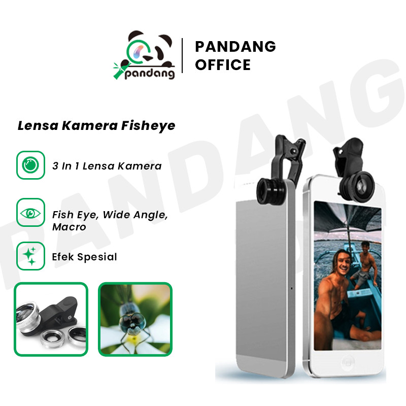Pandang 3in1 Lensa Kamera Fisheye / Wide Angle / Macro / Zoom Dengan Klip on Untuk Smartphone