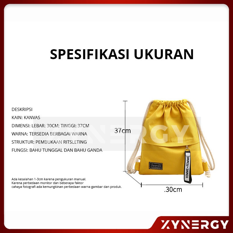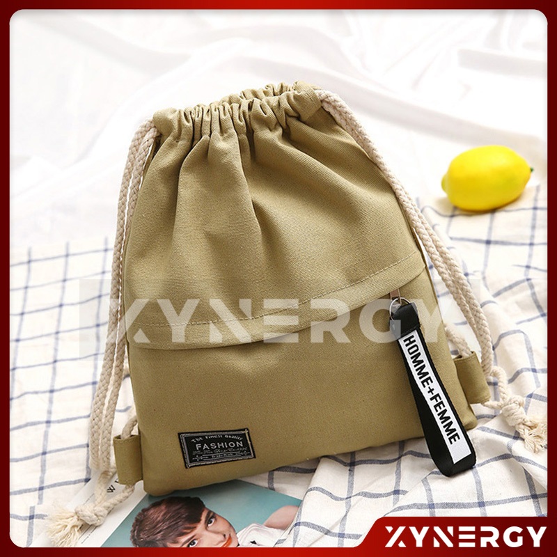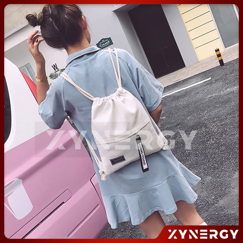 Tas Ransel Tali Serut Bahan Kanvas Kasual Pria & Wanita Warna Polos Modis