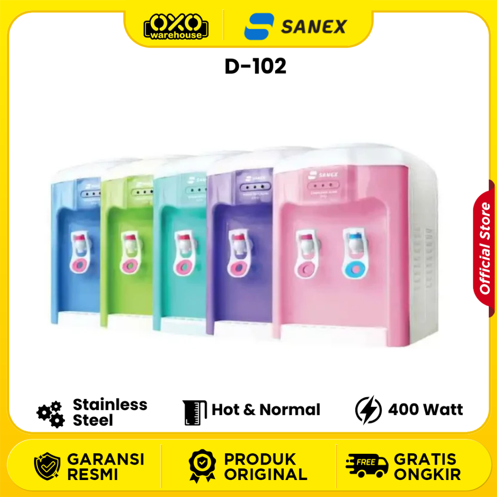 SANEX Water Dispenser D-102 Galon Atas Hot-Normal Low Watt Garansi Resmi