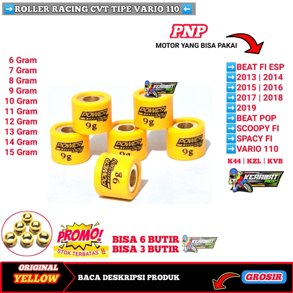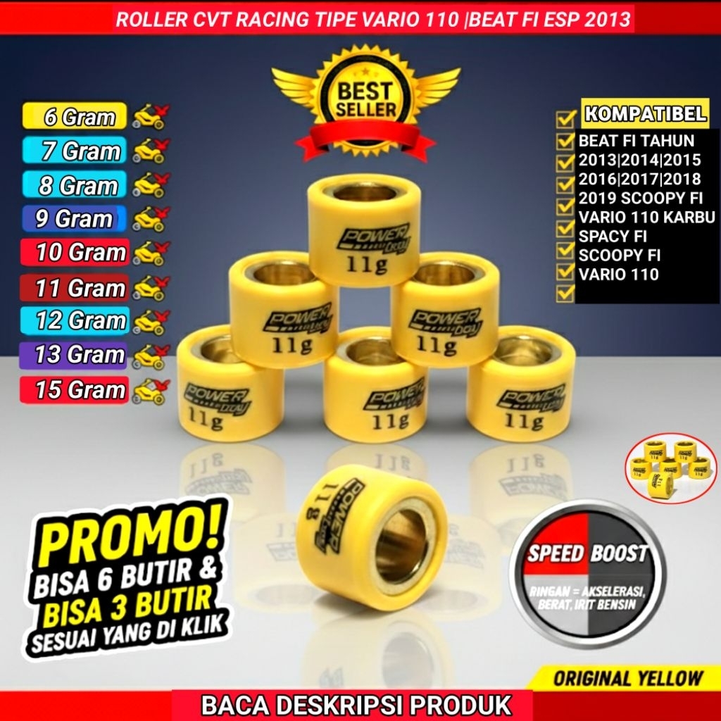 ROLLER ( YELLOW BF ) ROLER LOLER RACING BEAT Fi Esp SCOOPY SPACY VARIO 110 KARBU FI 6 7 8 9 10 11 12 13 14 GRAM GR ORIGINAL Motorcycle