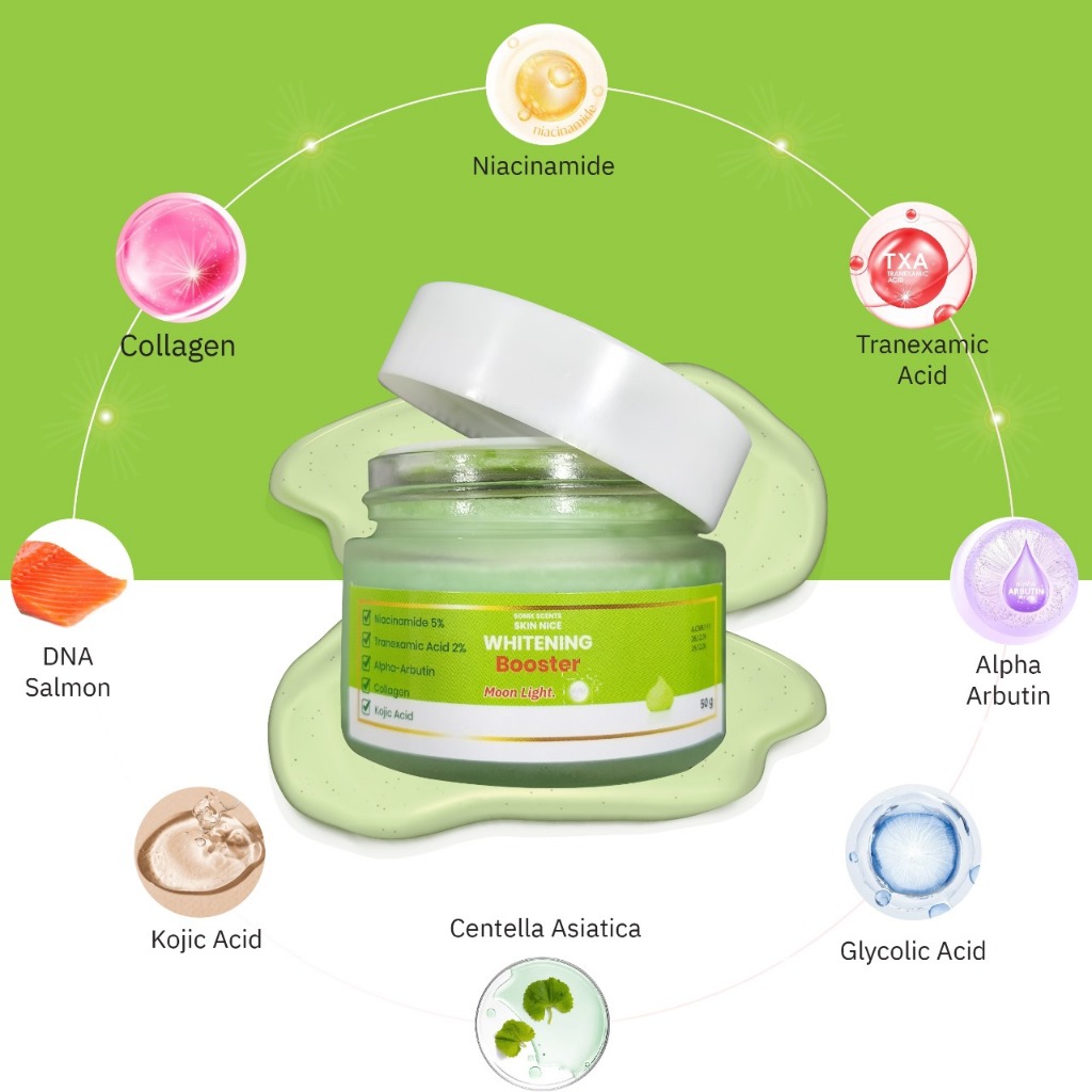 SKIN NICE WHITENING BOOSTER 50/30 gr Moon Light Niacinamide 5 PERSEN,Tranexamic acid 2 PERSEN, Alpha arbutin, Collagen, Kojic acid