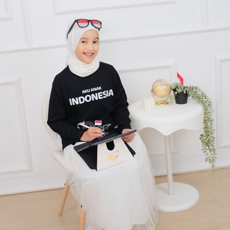 [Star] 4SISTERS Kaos Anak Perempuan Muslim Panjang Line Art – Tema Kemerdekaan 17 Agustus Merah Putih