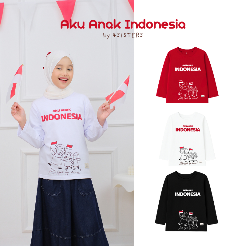 [Star] 4SISTERS Kaos Anak Perempuan Muslim Panjang Line Art – Tema Kemerdekaan 17 Agustus Merah Putih