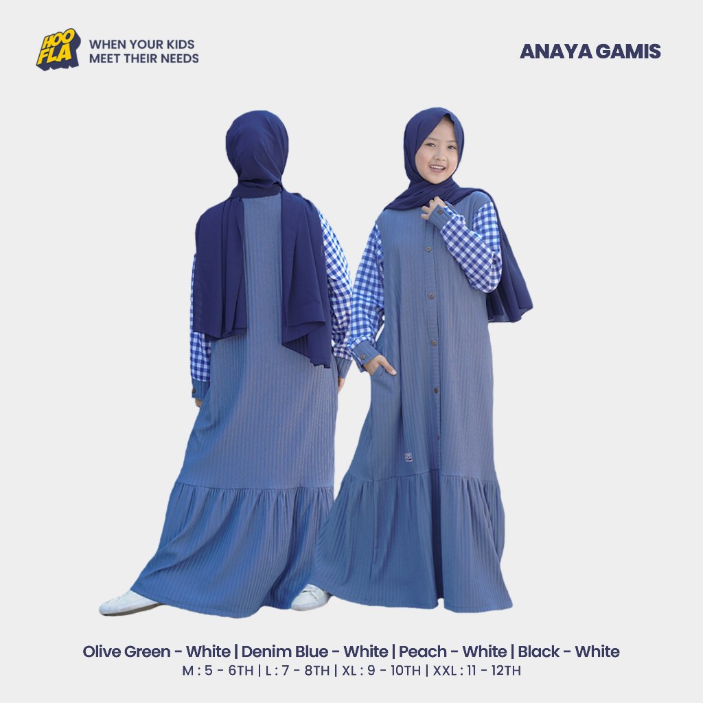 [Star] Hoofla Anaya Gamis Anak Perempuan 5-12 Tahun Muslimah Denim Blue White