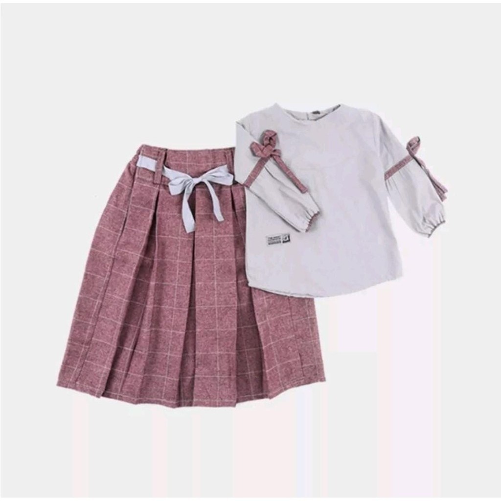 [Star] Hoofla Naura Blouse Celana Rok Anak Perempuan 3-12 Tahun Setelan Muslimah Abu Maroon