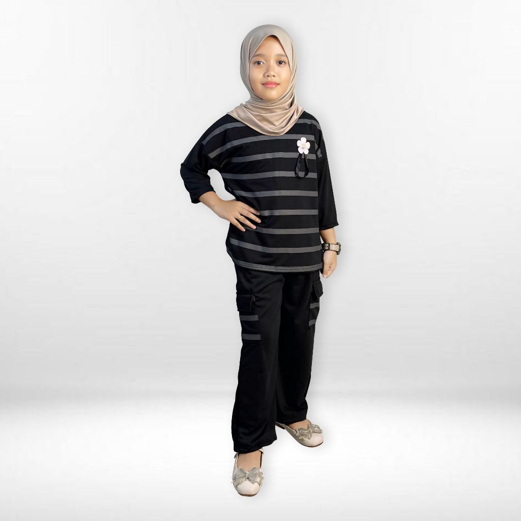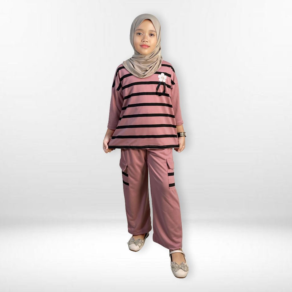 [Star] Setelan Baju Anak Perempuan Salur Bunga 155 MONTYFASHION