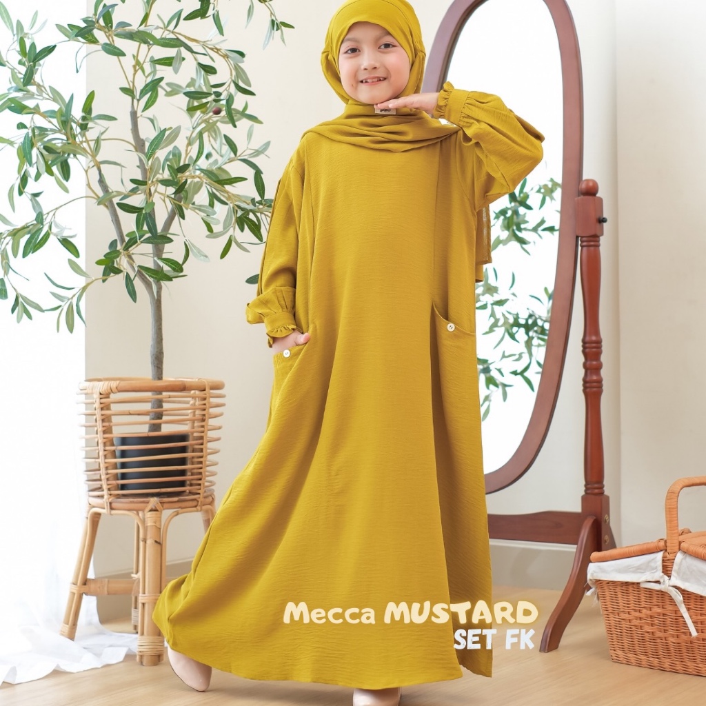 [Star] Copiaco - Mecca Set FK Gamis Crinkle Anak Perempuan Syari Umur 3-13 Tahun Mustard