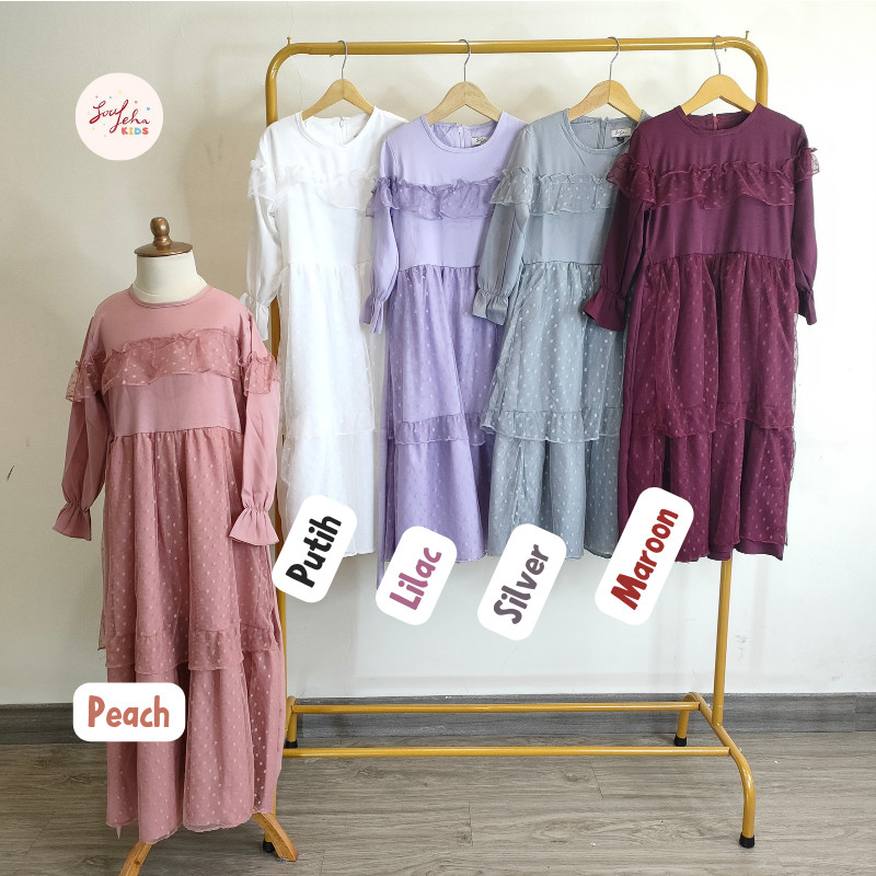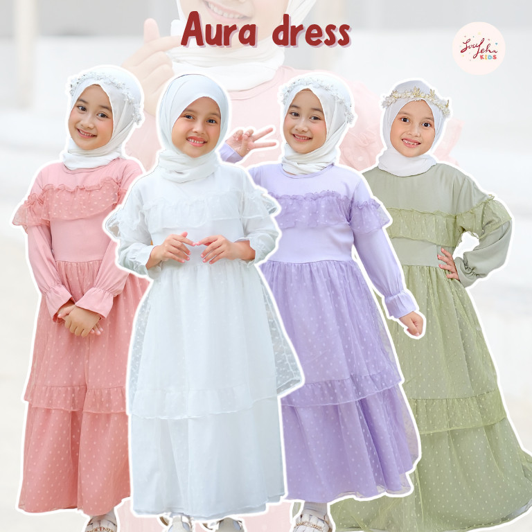 [Star] Soulleha Gamis Anak Bonus Jilbab Aura Dress Gamis Lebaran Anak 1-11 Tahun
