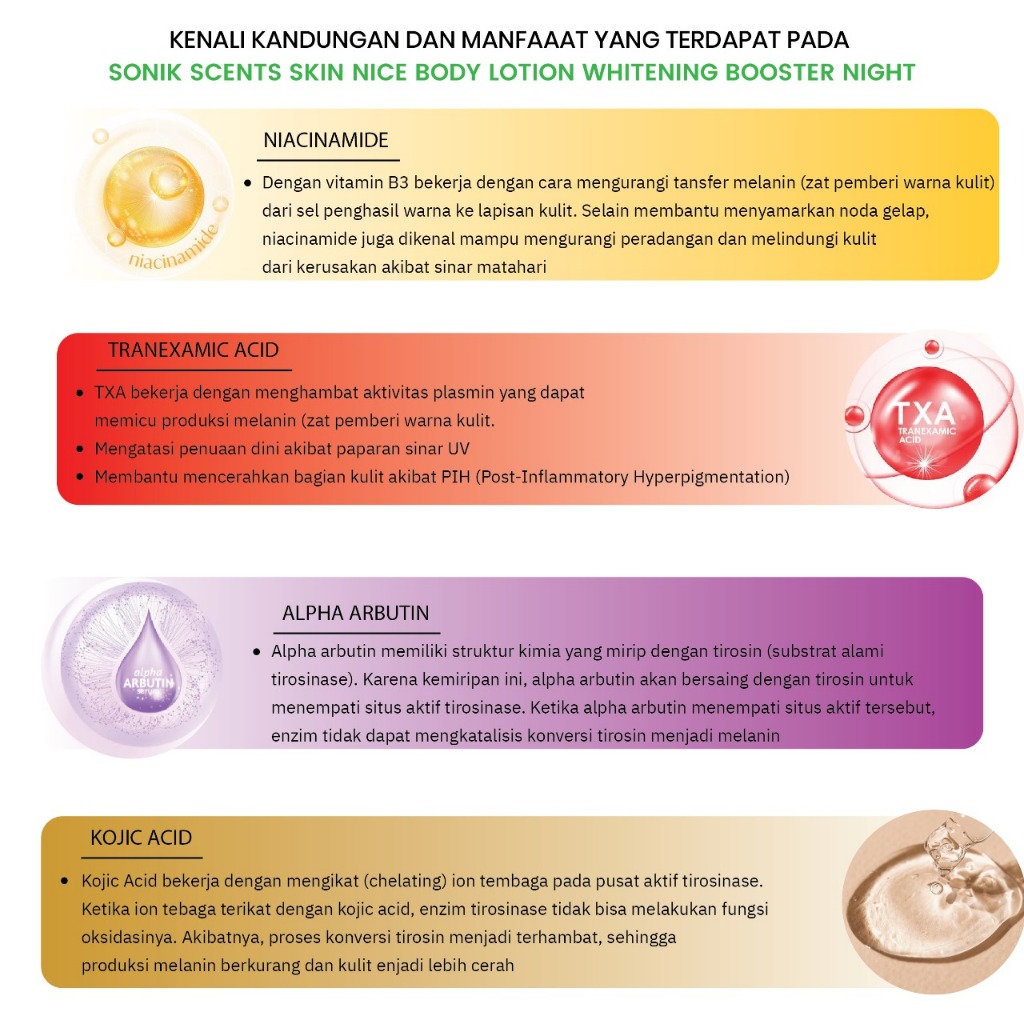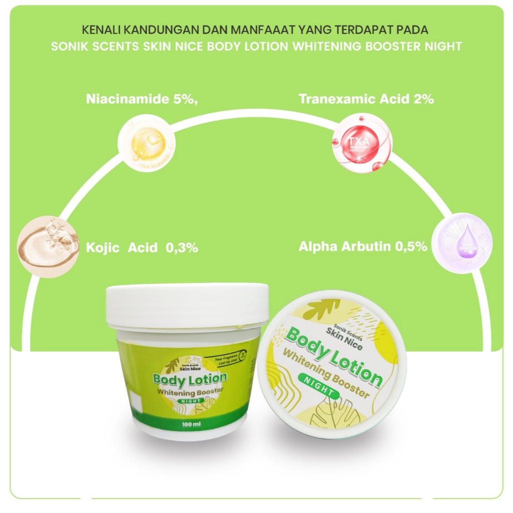SONIK SCENTS SKIN NICE Body Lotion Whitening Booster Night Cream Hijau Vitamin lotion Niacinamide 5 PERSEN ,Tranexamic acid ,