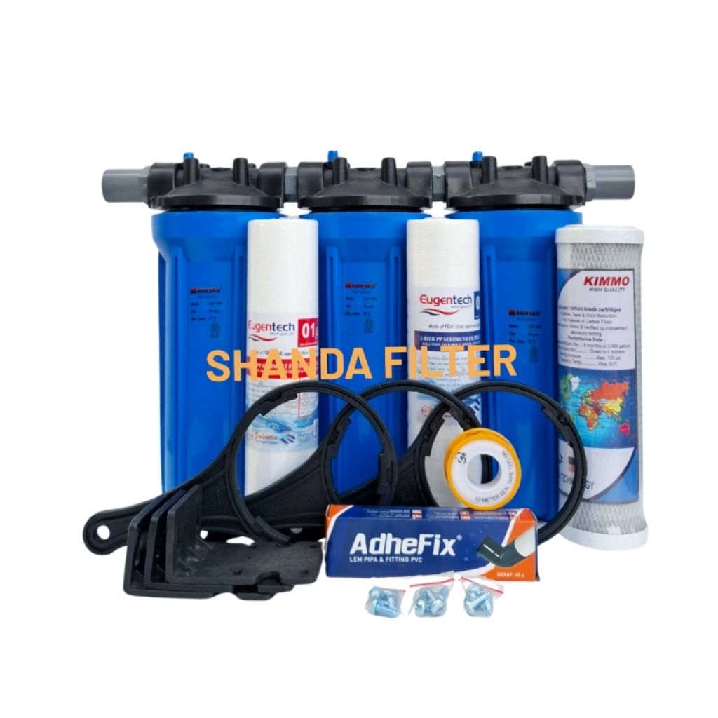 Paket Filter Air 3 Tahap Puretrex / Filter Air Keruh / Air Pam (Blue 10" Drat 3/4" SSC)
