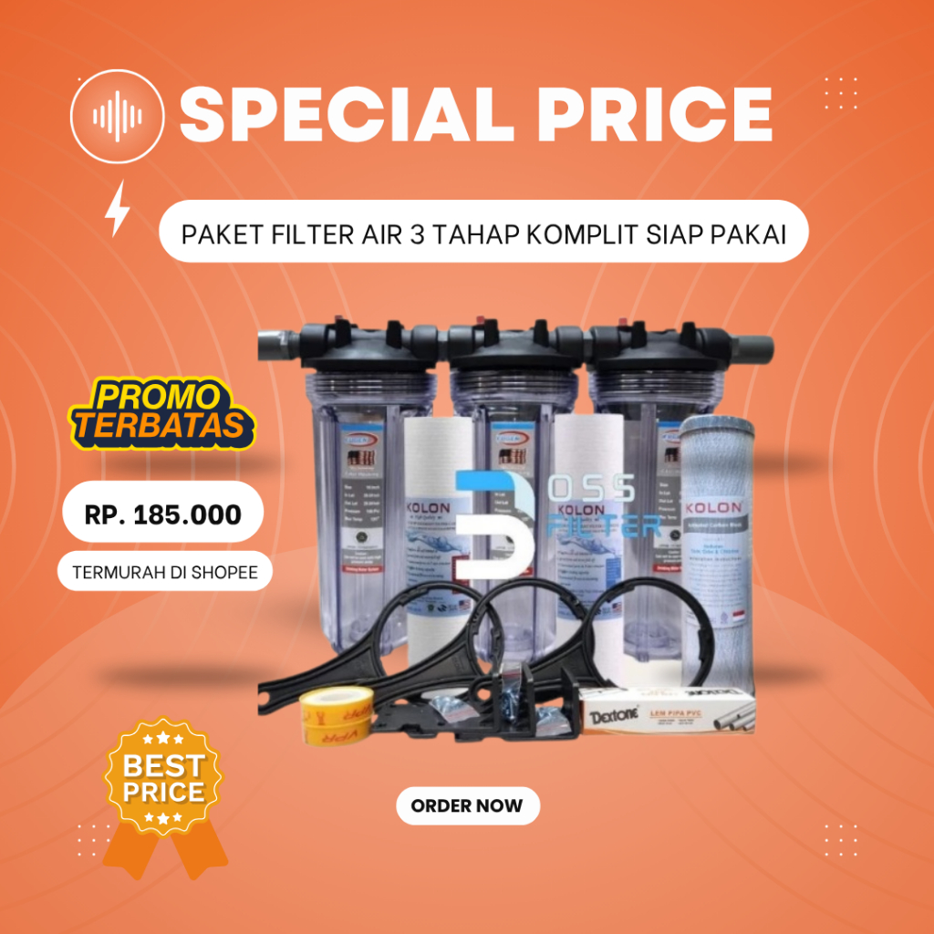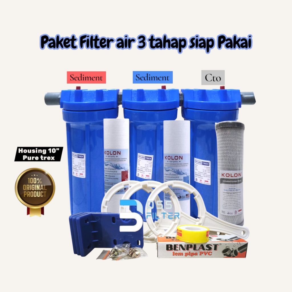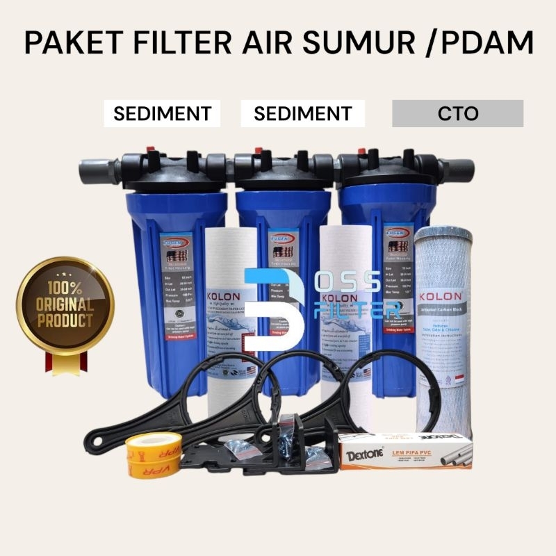 PAKET FILTER AIR SUMUR/PDAM 3 TAHAP PENYARINGAN / HOUSING FILTER EUGEN 10" ( SEDIMENT-SEDIMENT-CTO)