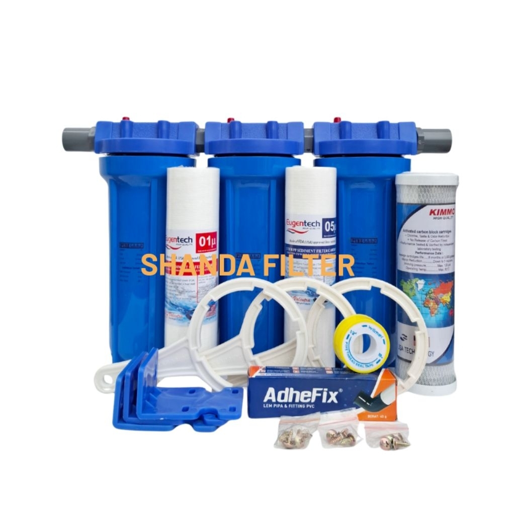 Paket Filter Air 3 Saringan Siap Pakai (Blue 10" drat 3/4" SSC)