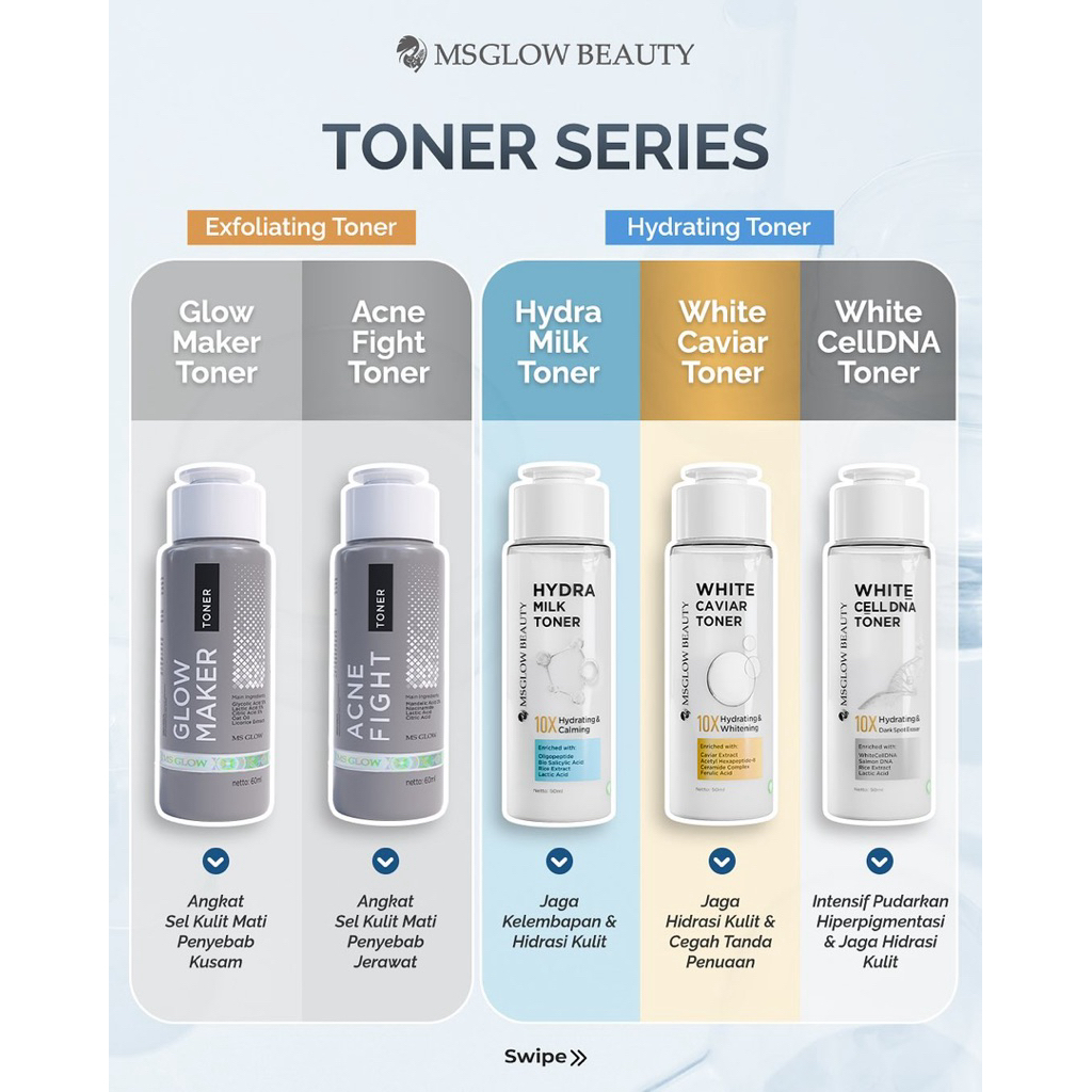 Night Whitening, Night Luminous, Night Acne, Night Ultimate, Night DNA, Day Cream, Toner Glow Maker, Toner Acne Fight, Toner Milk, Toner Caviar