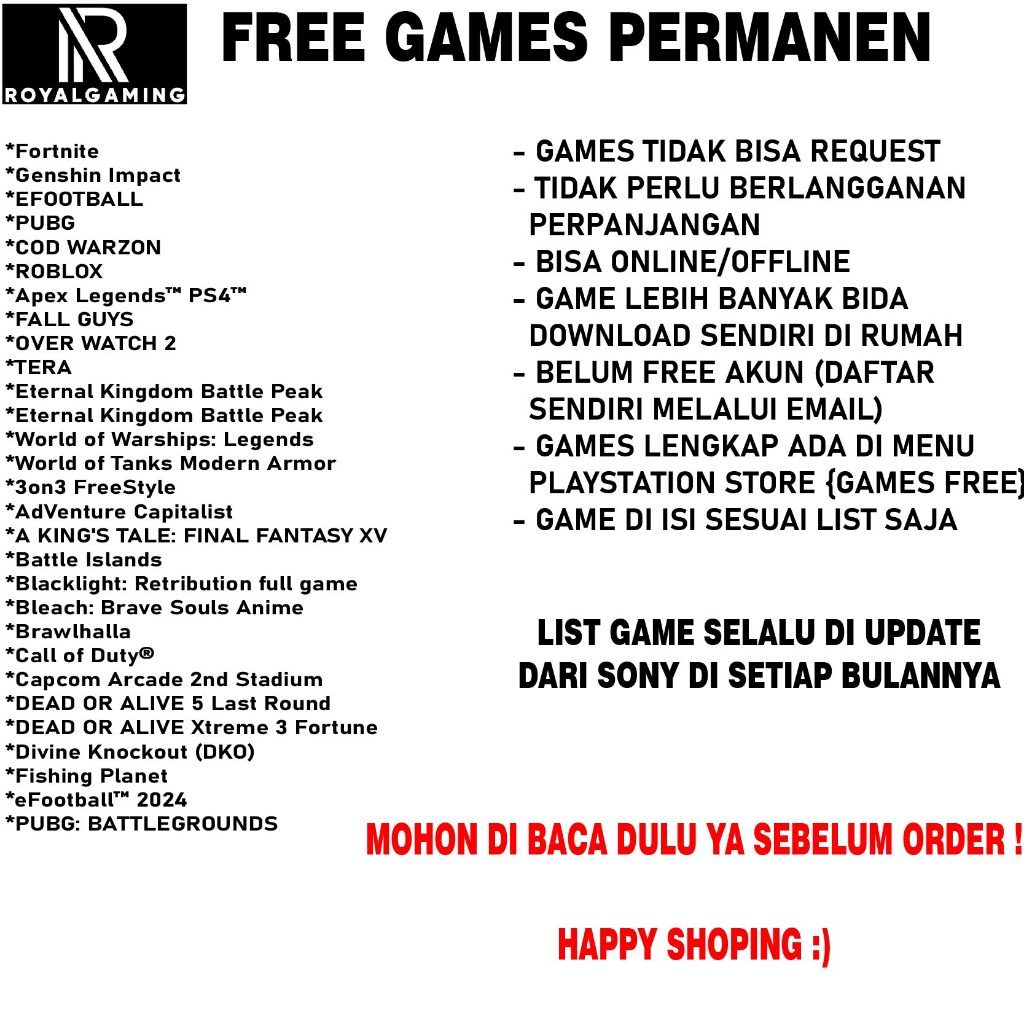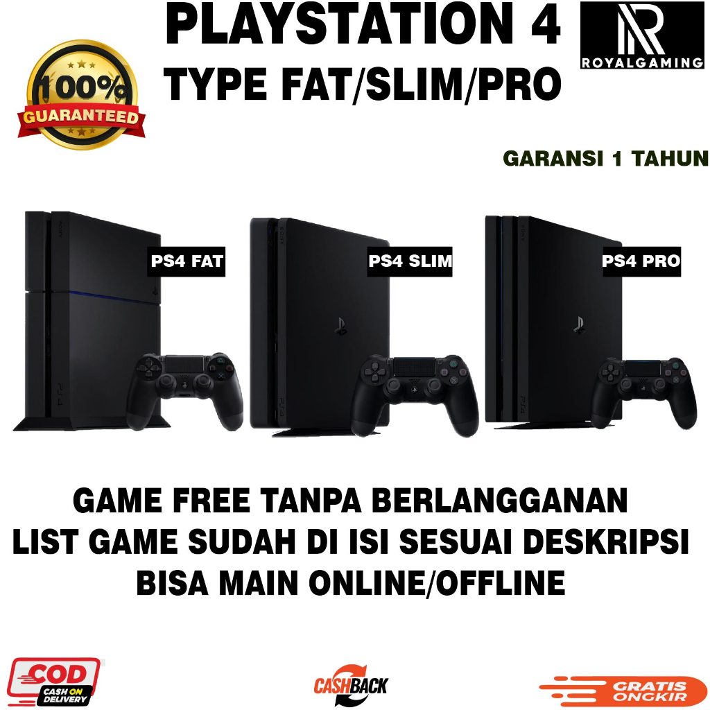 Royalgaming Playstation 4 Original | Ps4 Sony 1TB Fat | Slim | Pro Bonus 500++ Games tanpa langganan