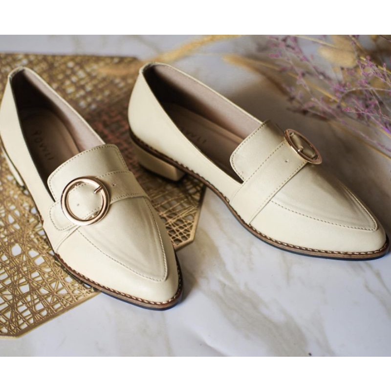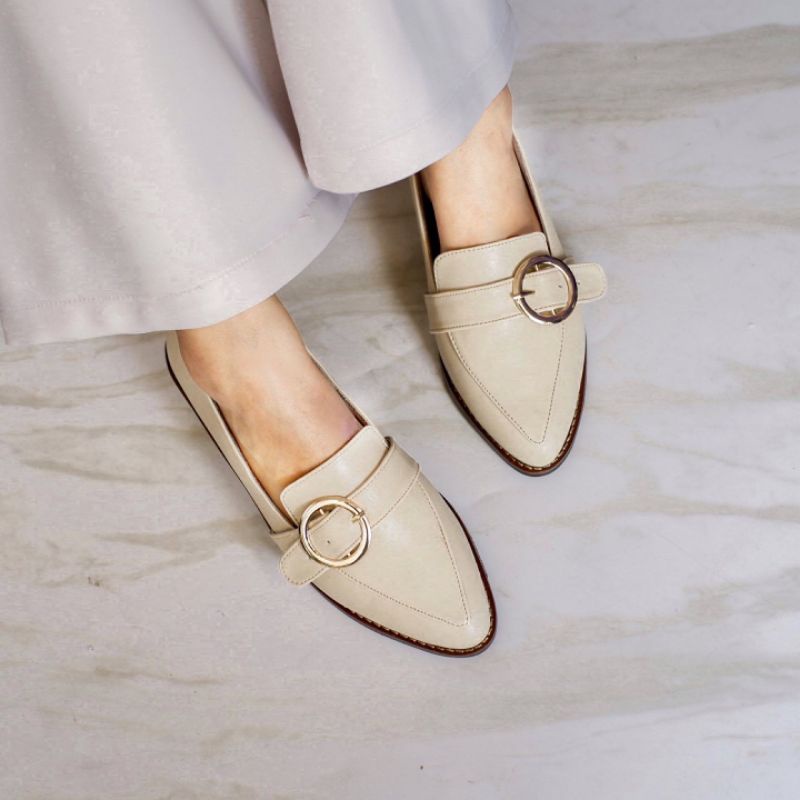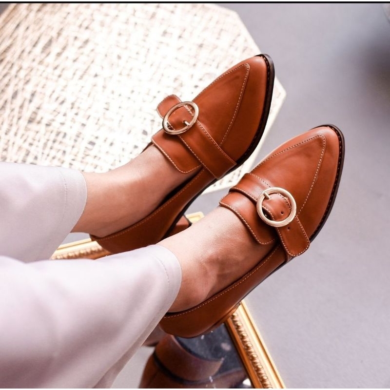 YOVVLI SORAYA Flatshoes Sepatu kerja wanita hitam empuk kulit artificial hak 3 cm