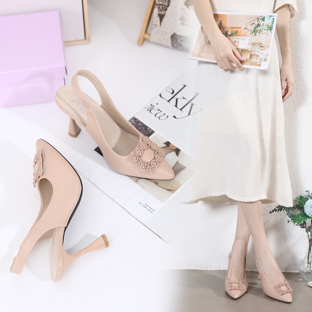 ELLORA EL-7207 Sepatu High Heels Wanita Kerja Slingback Import Sintetis 9cm