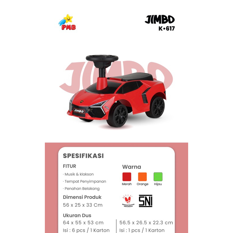 Mainan Mobil Dorong Anak Toys Ride on Car PMB JIMBO K-617 K617 Tolocar TOLO CAR K616 K-616 COCOMELON Bis K618 VIBE K619