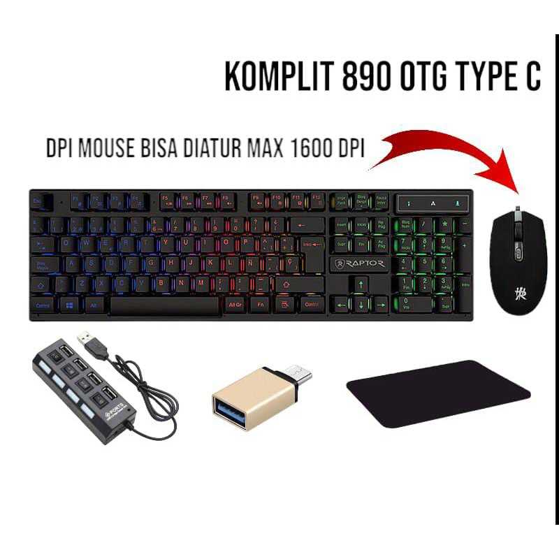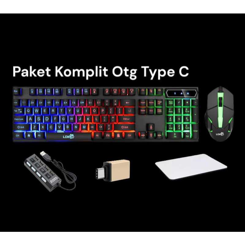 PAKET KOMPLIT Keyboard Gaming LED + Mouse + USB HUB 4 PORT FREE OTG Micro & MOUSE PAD