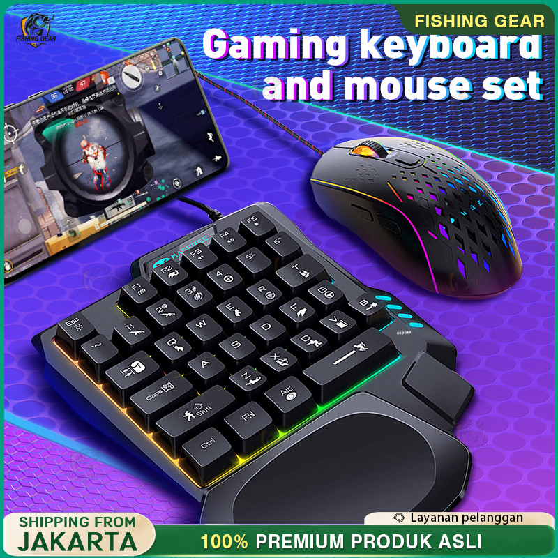 Paket Keyboard Gaming Dan Mouse/Single Hand Gaming RGB Keyboard Dan Mouse PUBG Keyboard Gamin USB 5.0 Converter Wired Ke