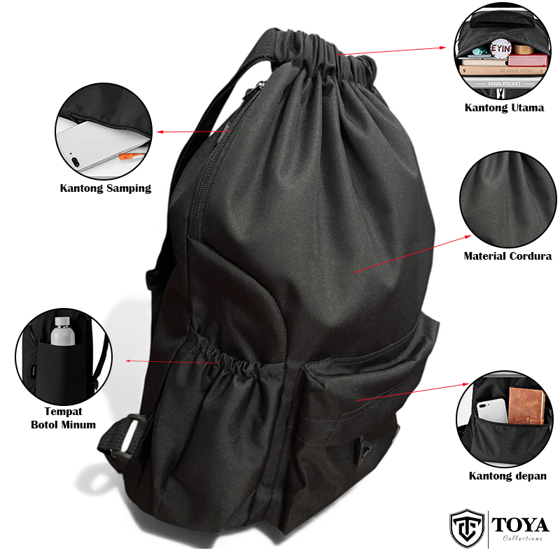 Ransel Serut Multifungsi Pria & Wanita // Tas Ransel Stringbag // Tas Peralatan Olahraga,sekolah,outdoor dan Lain-lain