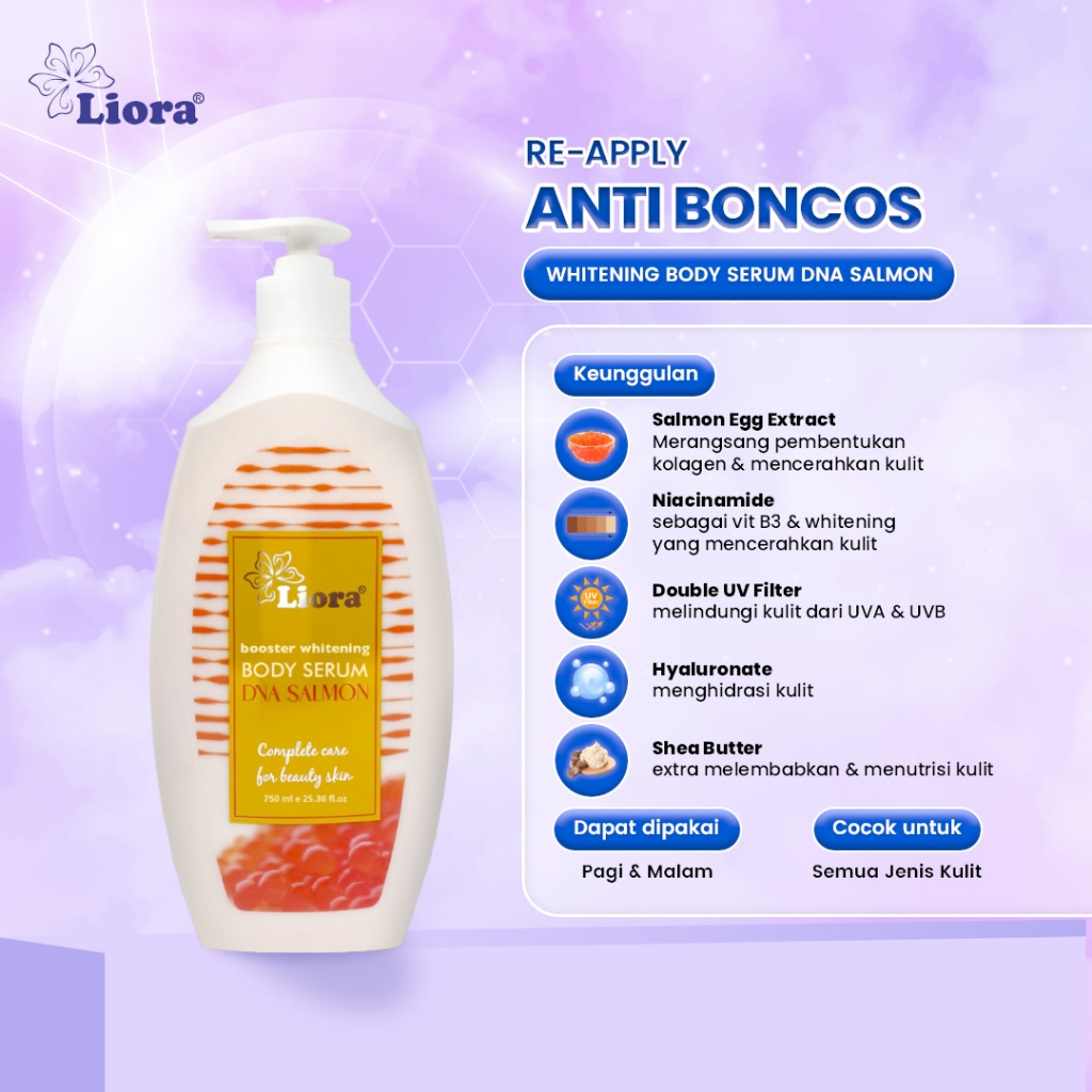 LIORA Booster Whitening Body Serum (DNA Salmon) - 750ML | Serum Mencerahkan Melembabkan Kulit Kering