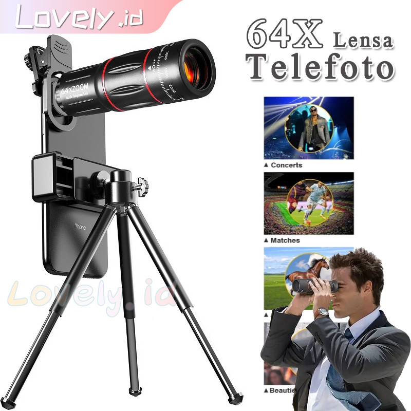 Lensa Kamera Hp Apexel 64x (Zoom Optik + Digital) Zoom Paduan Aluminium Lensa Tele Zoom Hp (Dengan Tripod)