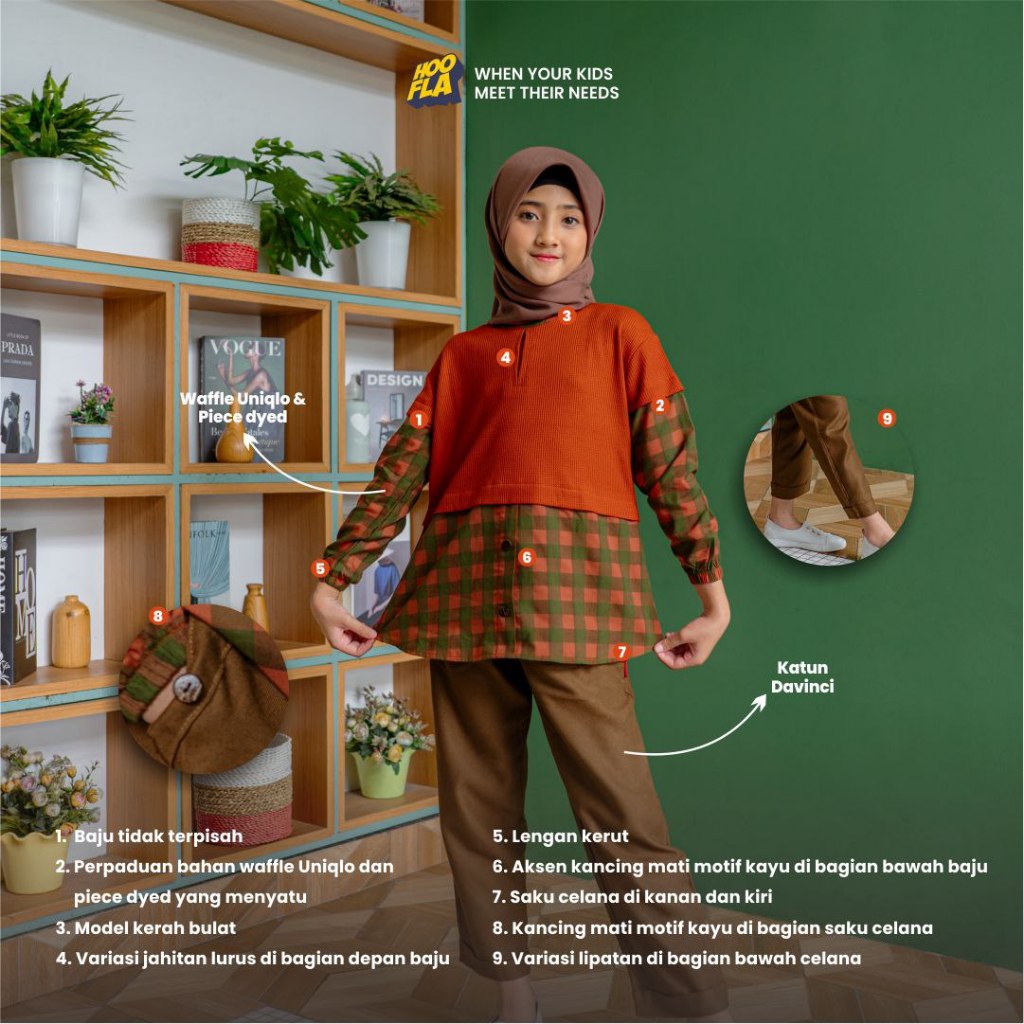 [Star] Hoofla Sabina Baju Celana Anak Perempuan 5-12 Tahun Muslimah Setelan Casual Terracotta Moss