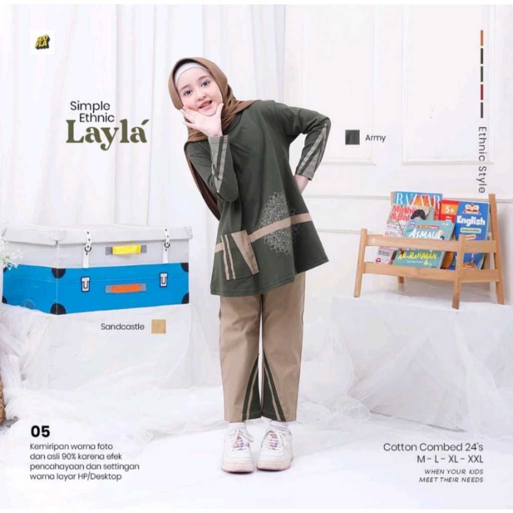 [Star] Hoofla Simple Ethnic Layla Qais Baju Muslimah Anak 5-12 Tahun Setelan Casual Army