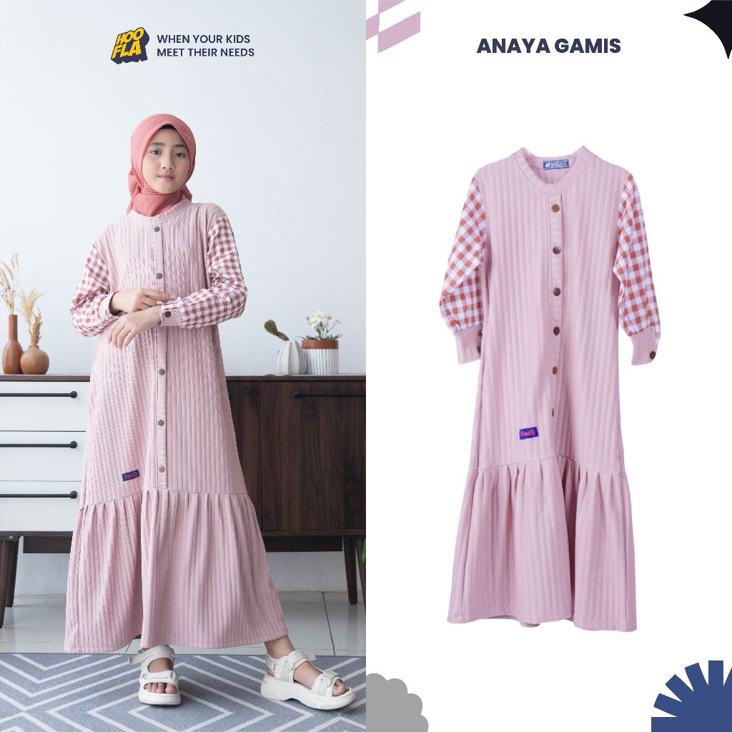 [Star] Hoofla Anaya Gamis Anak Perempuan 5-12 Tahun Muslimah Peach White
