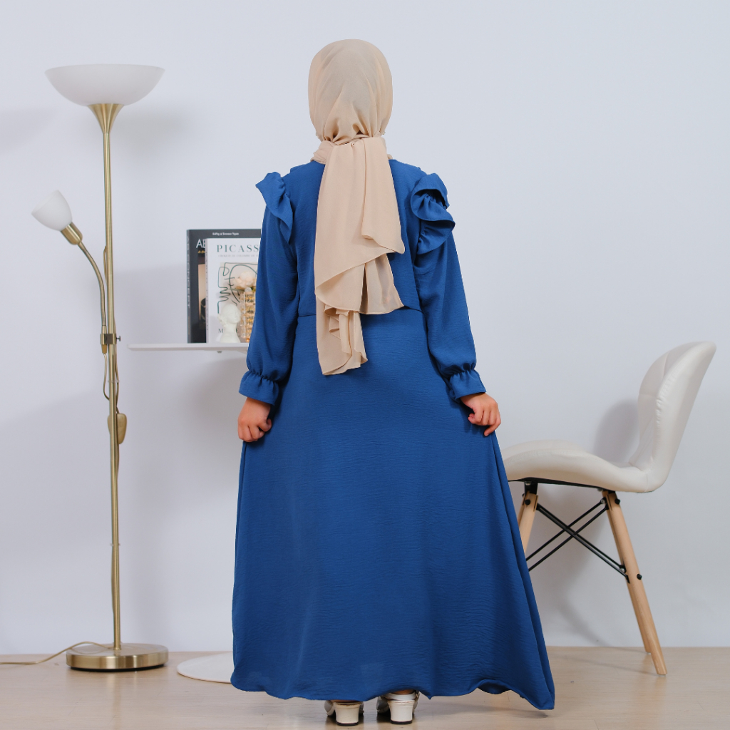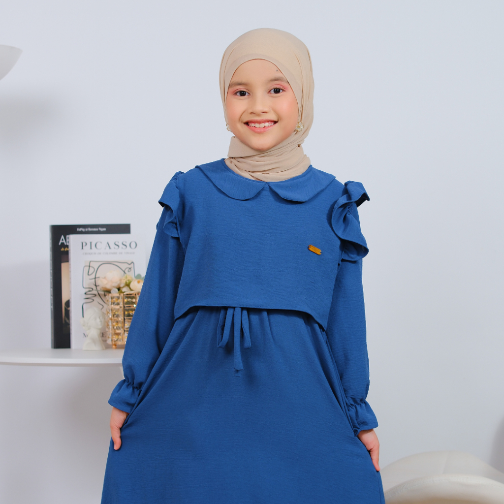 [Star] 4SISTERS Gamis Rompi Anak Perempuan Medina Dress Biru Denim | Gamis Anak Muslim Premium | Dress Anak Terbaru