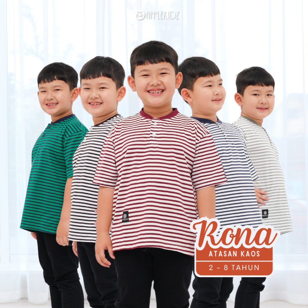 [Star] Applekidz Kaos Salur Stripe Anak Tangan Panjang Pendek Unisex Umur 2-8 Tahun Rona