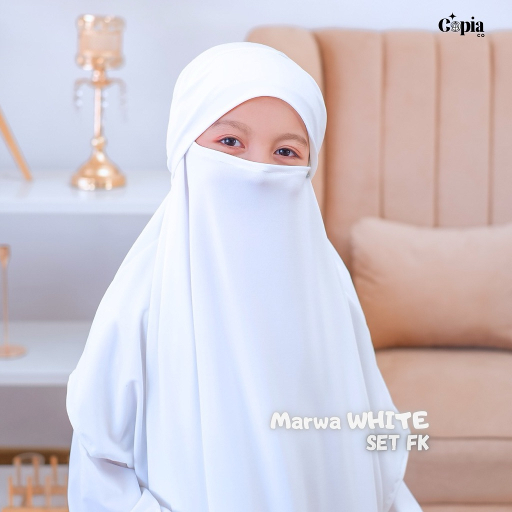 [Star] Copiaco - Marwa Set French Khimmar Gamis Jersey Anak Perempuan Syari Umur 3-13 Tahun - White