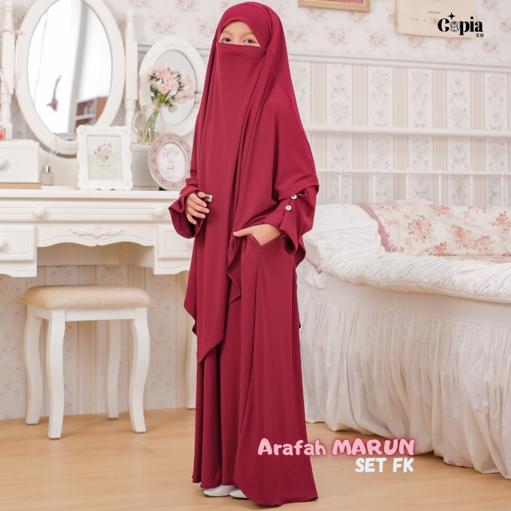 [Star] Copiaco - Arafah Gamis Jersey Anak Perempuan Set French Khimar Umur 3-13 Tahun Maron
