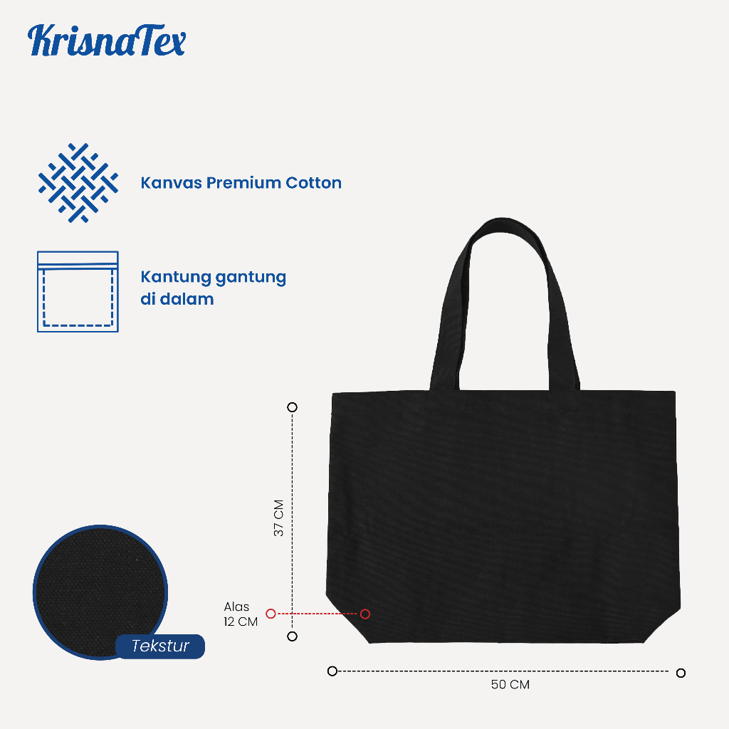 Krisnatex Tote Bag Alas Kanvas PREMIUM Polos - Tas Belanja Canvas Shopping