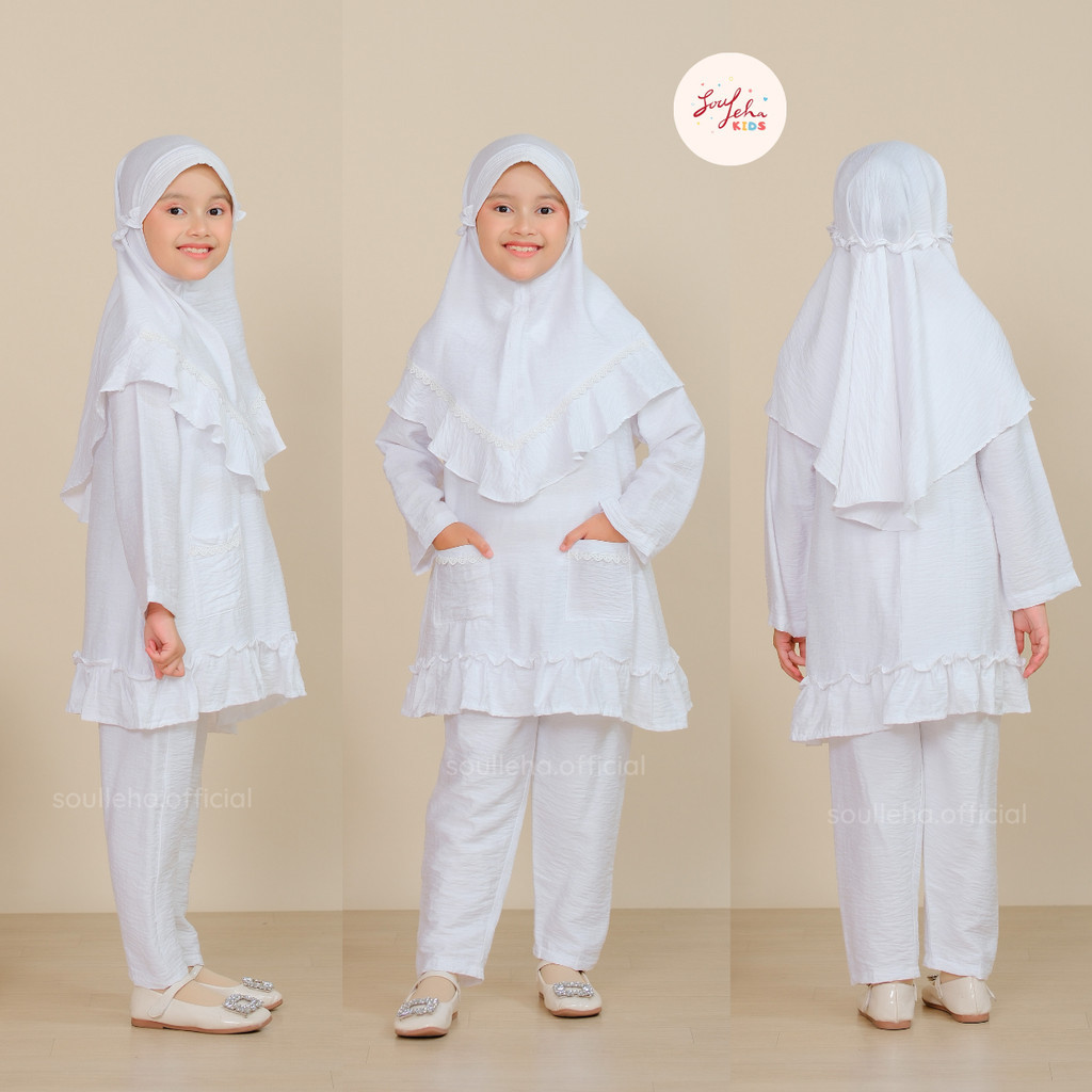 [Star] Soulleha Setelan Anak Putih Manasik Haji Anak TK Katun Polo Linen Premium 1-11 Tahun