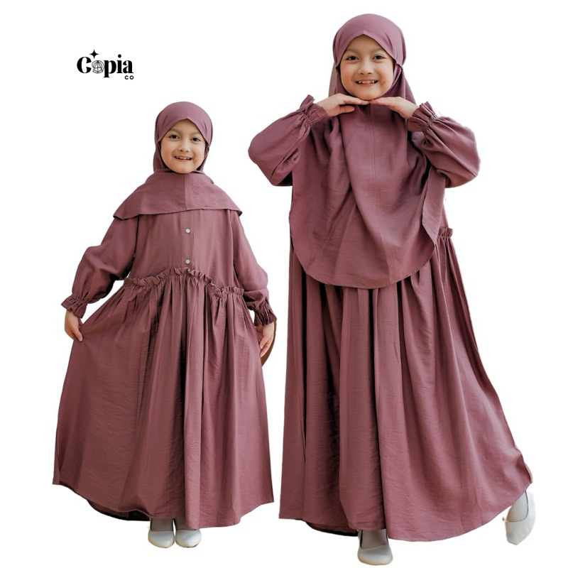 [Star] Copiaco - Aleya Set Bergo Gamis Anak Perempuan Set Bergo Syar'i Linen Umur 3-12 Tahun All Varian