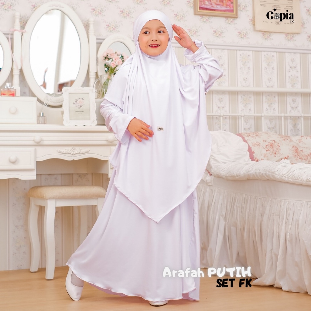 [Star] Copiaco - Arafah Gamis Jersey Anak Perempuan Set French Khimar Umur 3-13 Tahun Putih