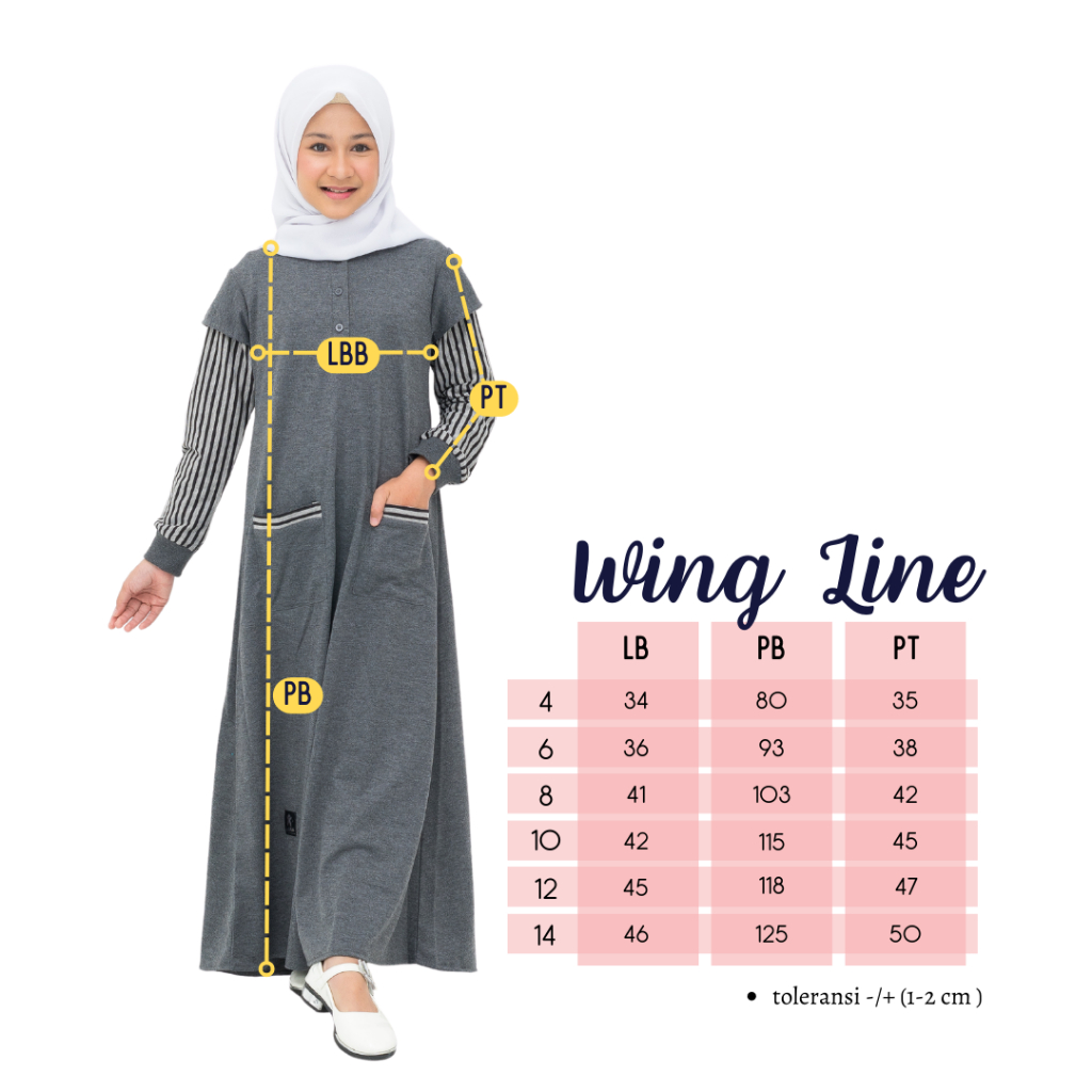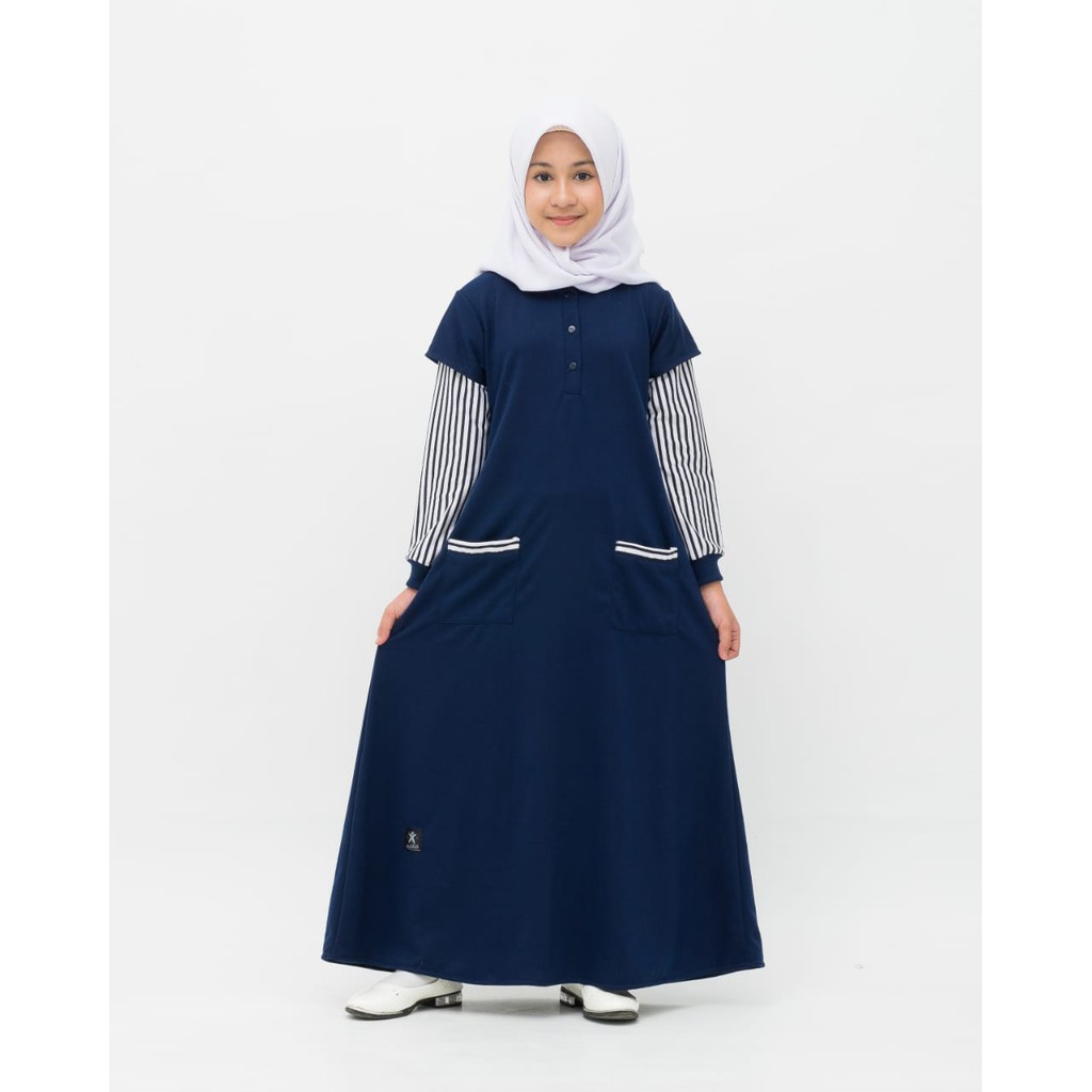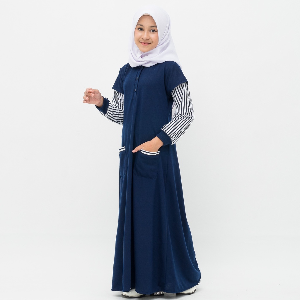 [Star] Applekidz Gamis Anak Perempuan Tanggung Syari Wing Line Navy