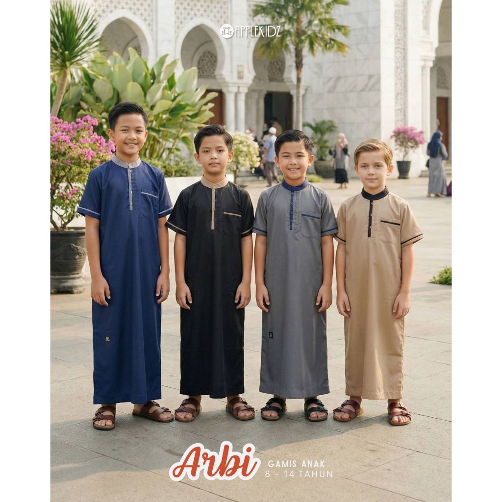[Star] Applekidz Baju Muslim Jubah Gamis Anak Laki 4-10 Thn Bahan Toyobo Lengan Pendek Polos Koko Arbi