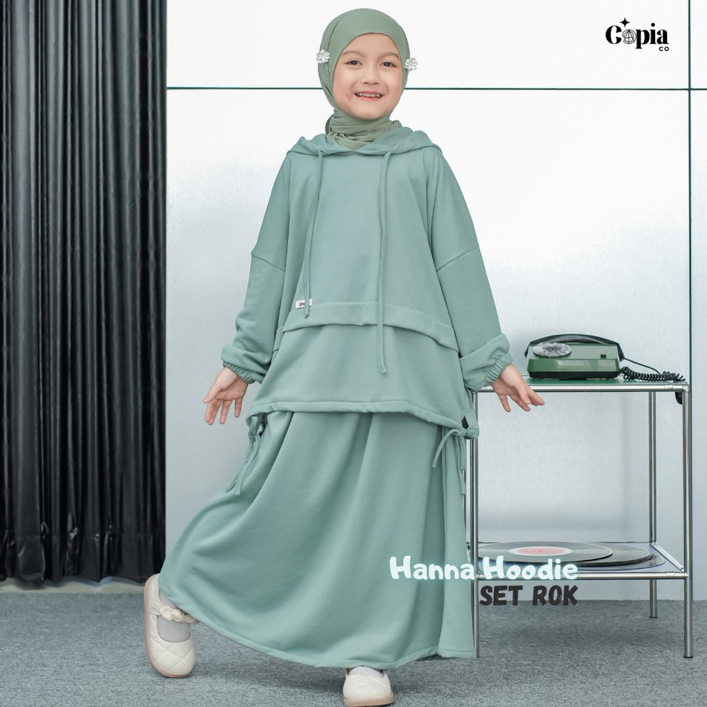 [Star] Copiaco - One Set Anak Hanna Hoodie Set Rok Setelan Anak Perempuan Umur 3-13 Tahun Sage