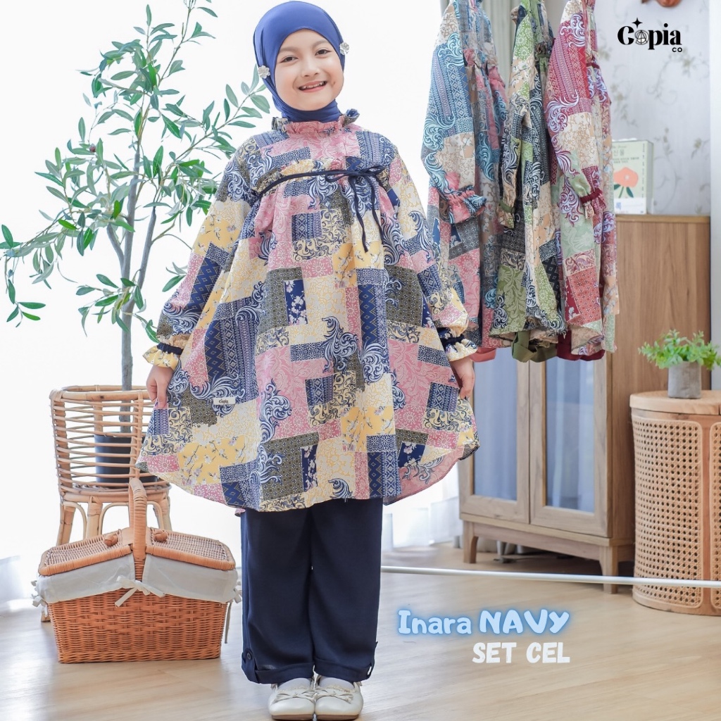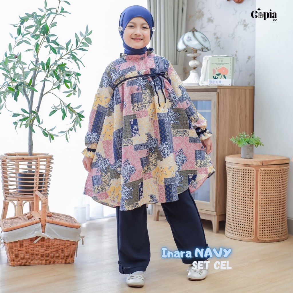 [Star] Copiaco - Inara Setelan Long Tunik Set Celana Anak perempuan Umur 3-12 Tahun Navy
