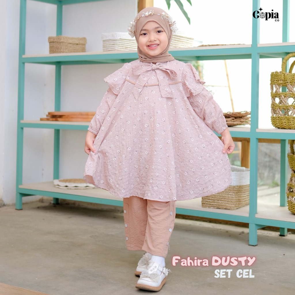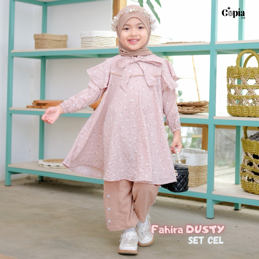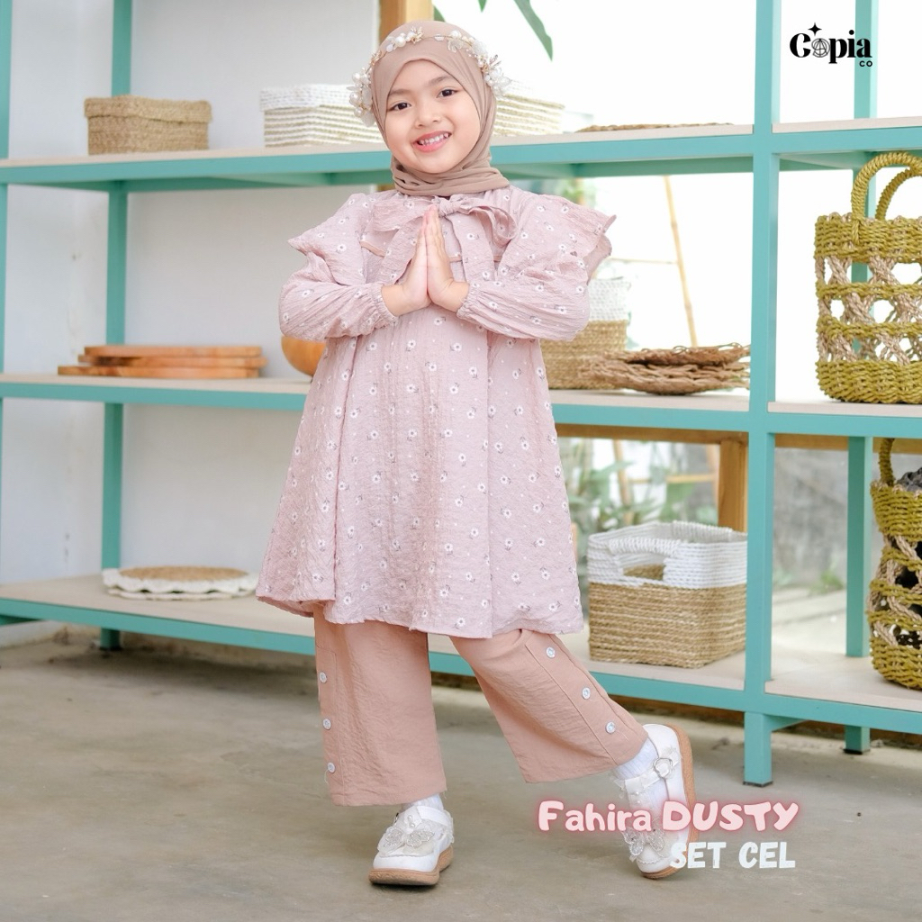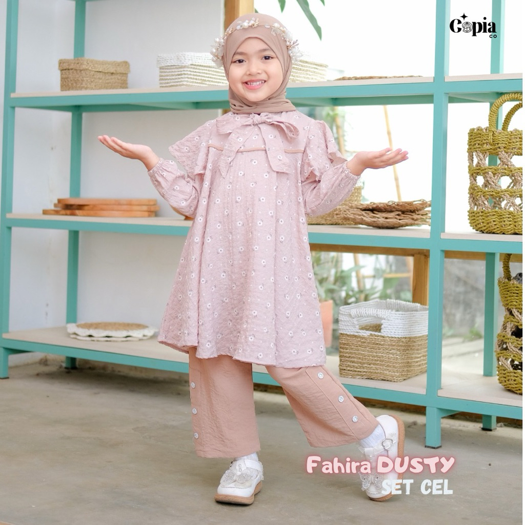 [Star] Copiaco - Fahira Oneset Anak Perempuan Setelan Long Tunik Set Celana Umur 3-12 Tahun - Peach