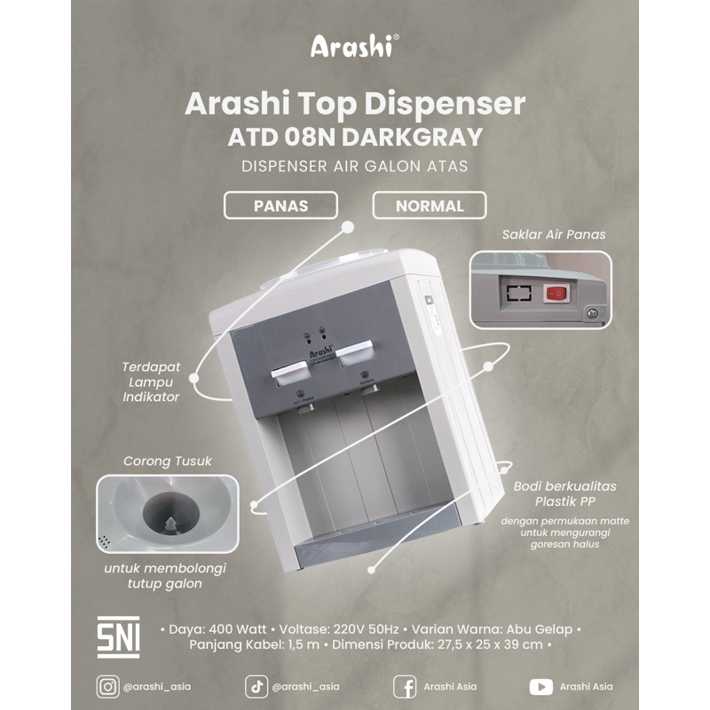 ARASHI DISPENSER TABUNG STAINLESS STEEL ANTI KARAT 2 IN 1 ATD 08N / ATD 07N (NORMAL AND HOT) GARANSI RESMI