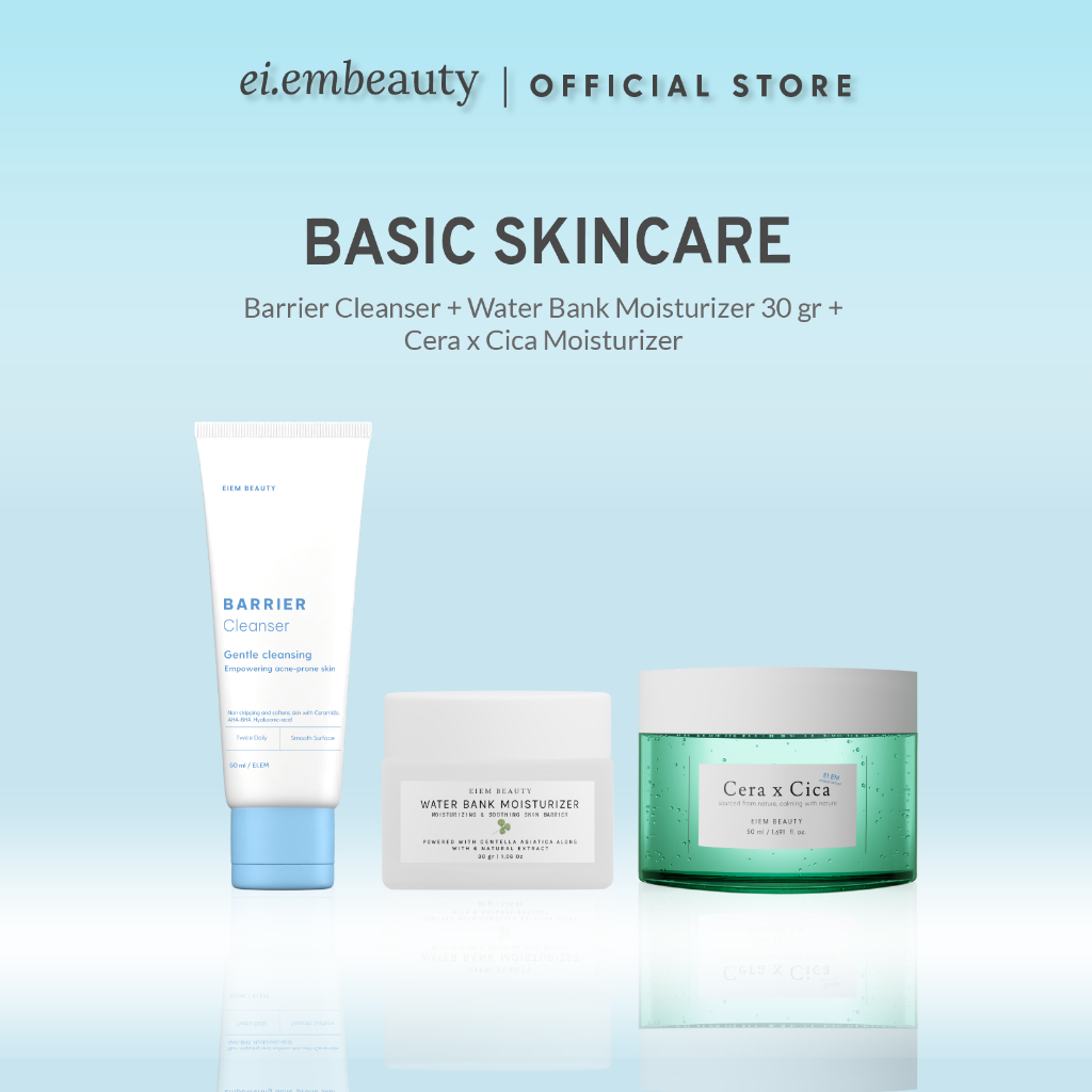 Eiem Beauty Basic Skincare Set: Facial Wash + Cera x Cica +Water Bank Moisturizer 30gr
